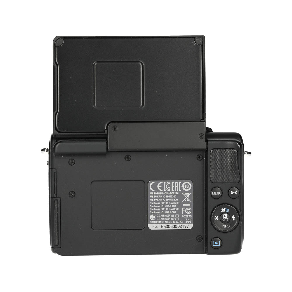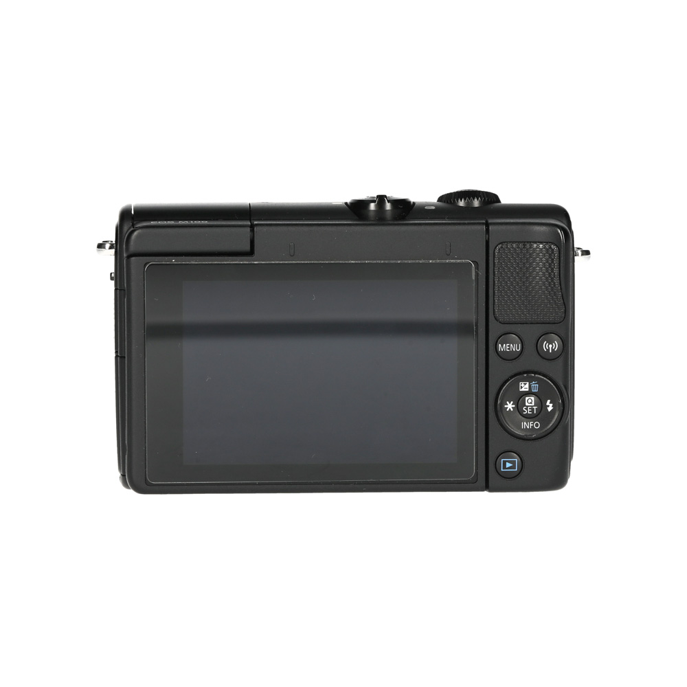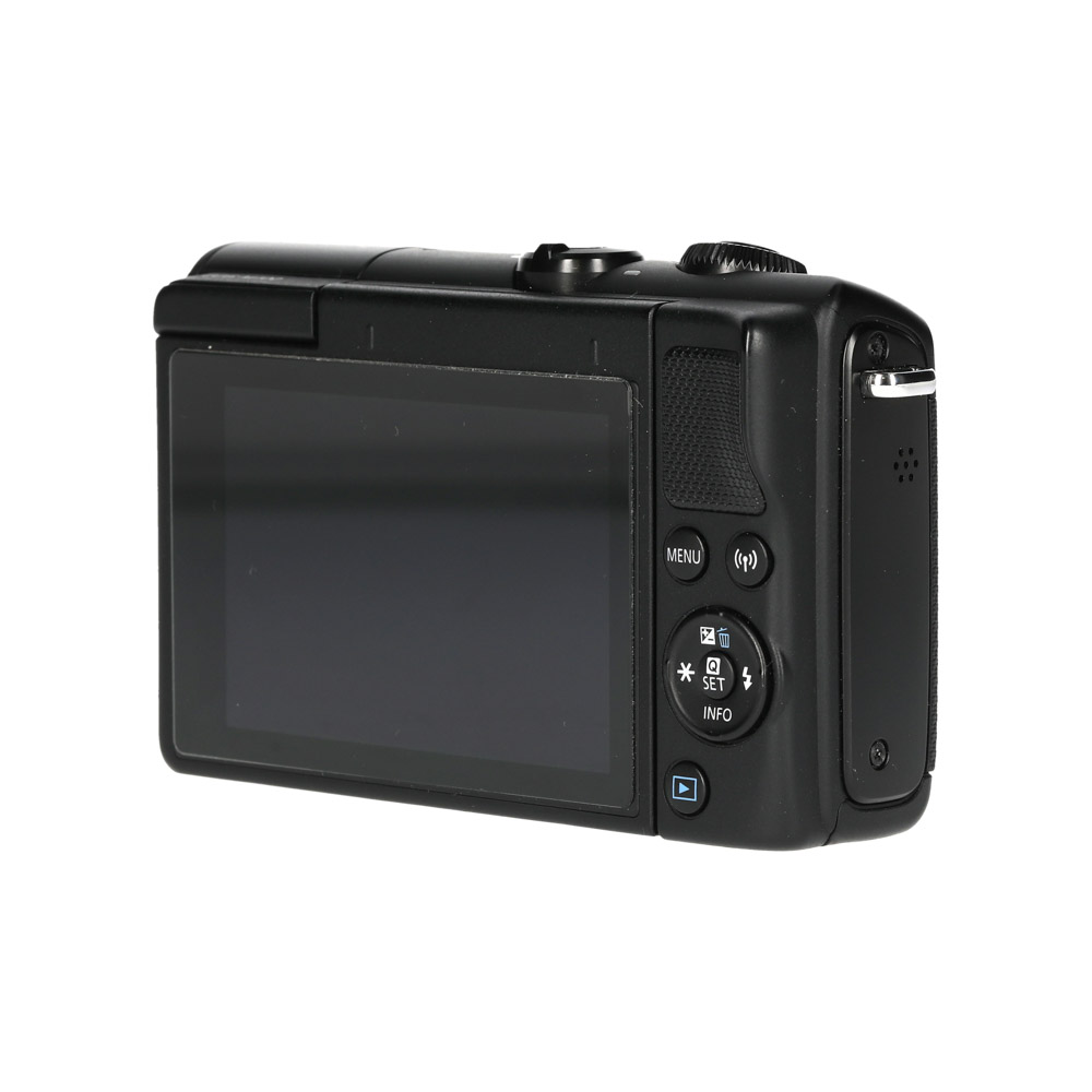 De Canon EOS M100 is een compacte systeemcamera met APS-C sensor en Canon EF-M vatting. Handig als je DSLR-beeldkwaliteit wilt in een kleine body met een kantelbaar touchscreen.